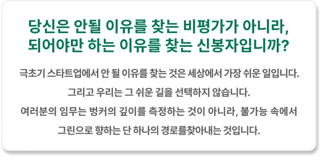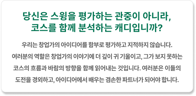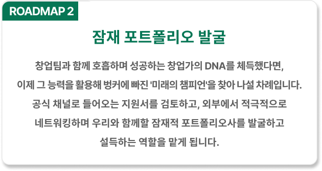 창업팀의 성장에 기여하고, 궁극적으로는 저희와 함께